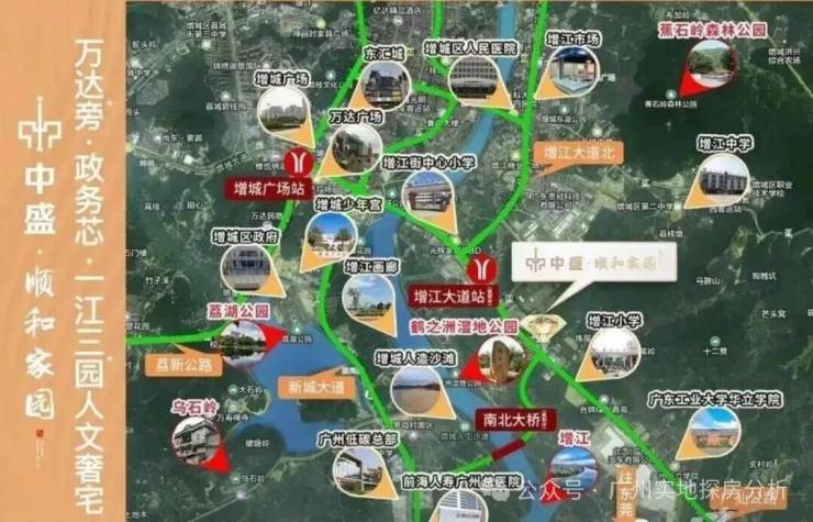 项目紧邻增江江岸,对望增江画廊,周边有鹤之洲湿地公园(约250亩)和蕉石岭森林公园(约6117亩),园林采用大退距设计,有效隔绝噪音和尘埃,营造“出则繁华,入则宁静”的居住氛围。