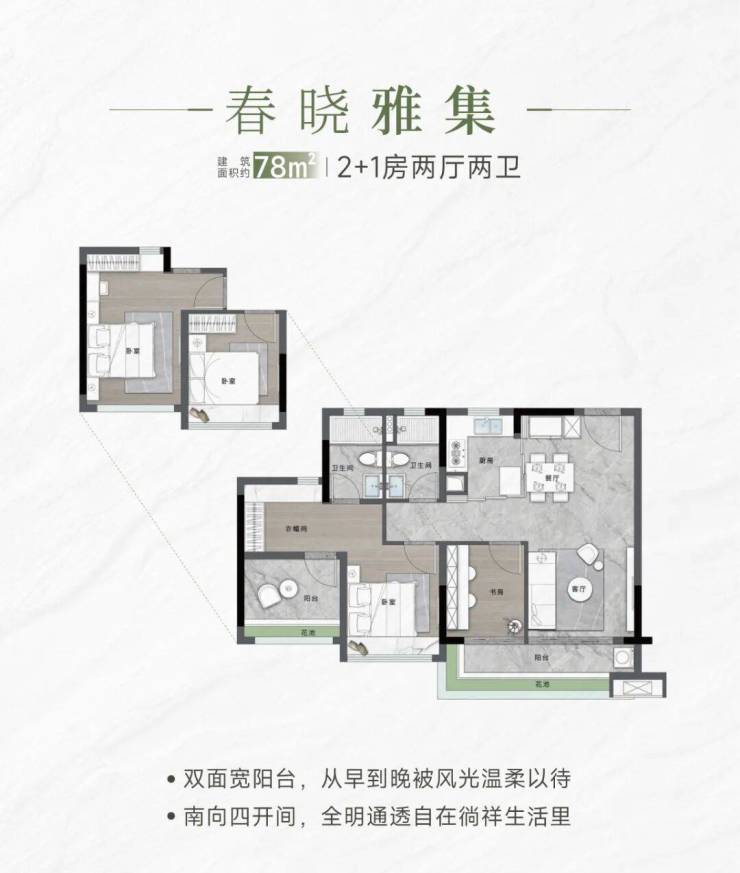 ⚜【约78㎡ 2+1房2厅2卫】
