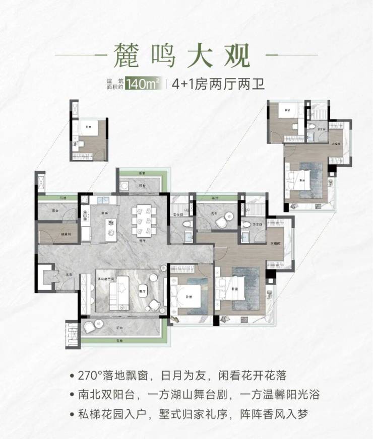 • 270度飘窗设计,主套全明开阔