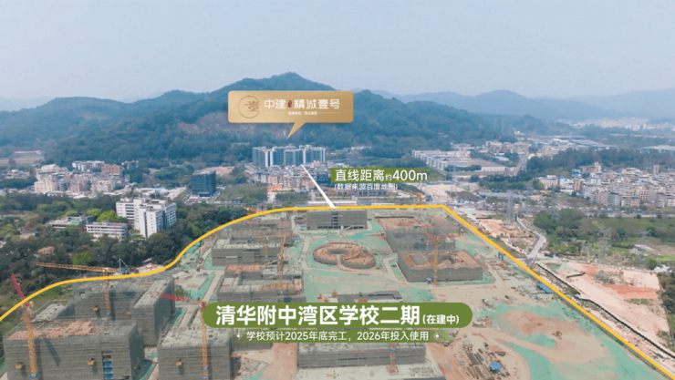 ☞名校为邻:距离清华附中湾区学校二期(建设中)直线距离约400m(数据来源:百度地图),出家门即入校门;二期校区已于2024年1月19日正式动工,预计于2026年1月30日竣工验收。顶尖教育配套全速兑现,教育高地升级焕新,菁英教育生活圈正在不断完善。