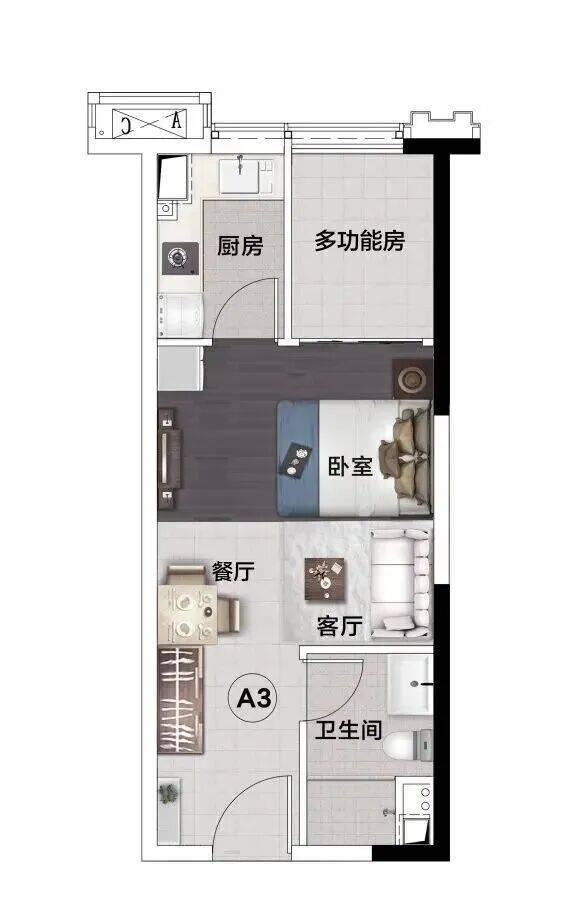 3. 百变loft产品 | 66.99㎡二室二厅二卫封闭式厨房设计 隔绝油烟打扰独立生活阳台设置 更显游刃有余4.5m挑空客厅 奢阔大气上下双卫生间配置 满足家庭所需