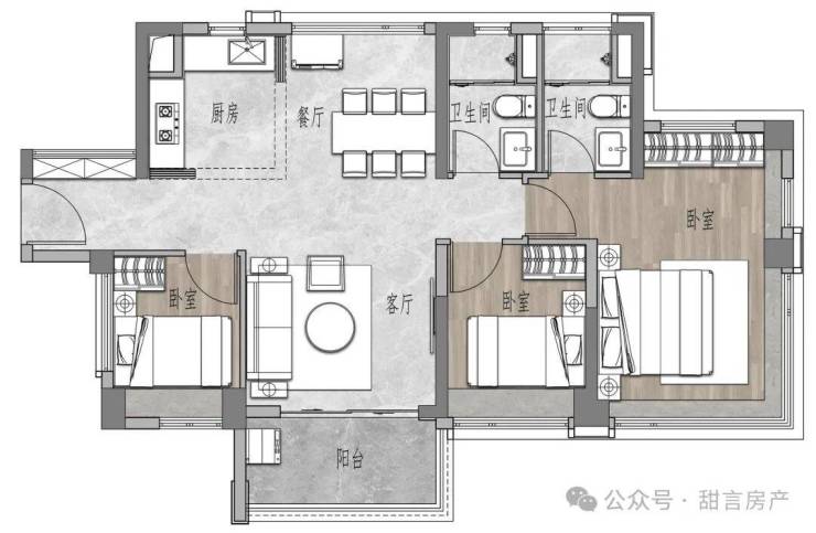 💡建筑面积约85㎡三房两卫;
