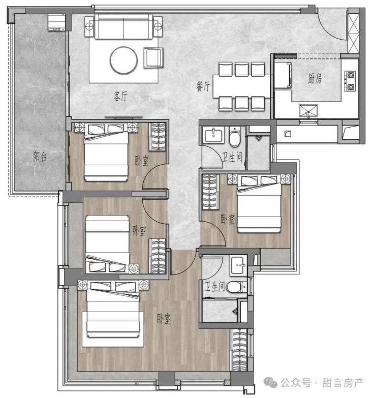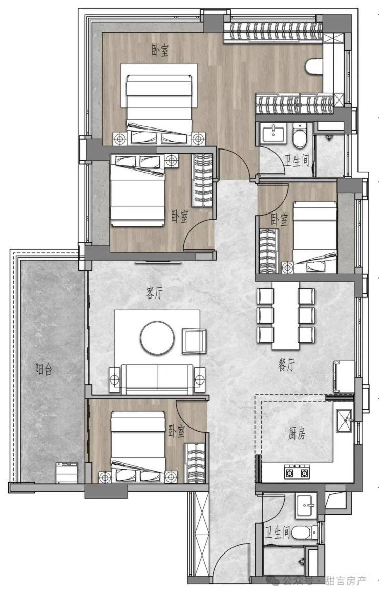 💡建筑面积约108㎡四房两卫;