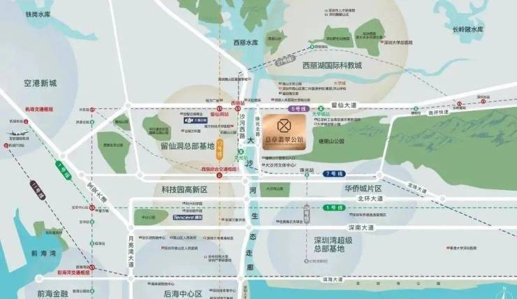 ②1枢纽:毗邻西丽综合交通枢纽(规划中),多地铁线路无缝接驳西丽综合交通枢纽,高效出行畅达全国。