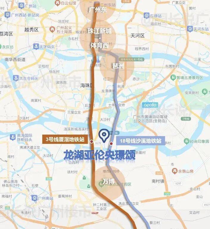 项目坐落在番禺沙溪,紧邻地铁18号线沙溪站(约600-700米)和3号线厦滘站(约1公里),可快速通达万博、琶洲、珠江新城等核心区域。