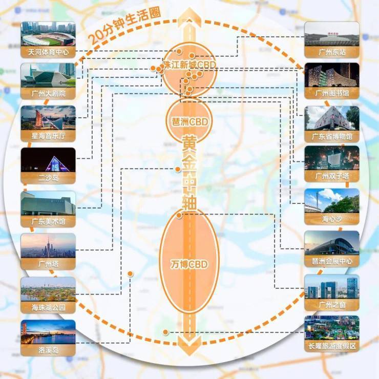 这里 作为广州黄金南中轴首站 , 咫尺珠江新城 -琶洲-万博三大世界CB D ,享 广州主城黄金 20分钟 生 活圈 。