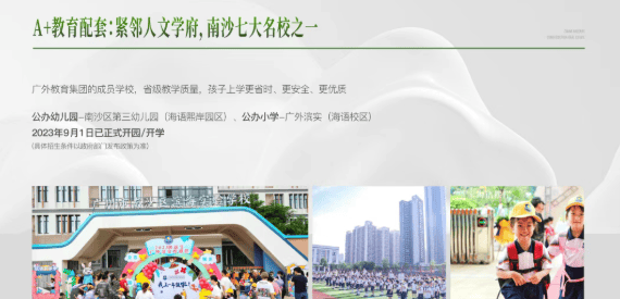 教育方面,项目楼下即是广州外国语教育集团旗下的滨海实验学校南校区(九年一贯制),属南沙第一梯队教育资源;同时配建南沙第三幼儿园(海语熙岸园区),从3岁到15岁,优质教育无缝衔接。周边更有南沙少年宫、文化馆等素质拓展空间,为孩子成长提供多元舞台。