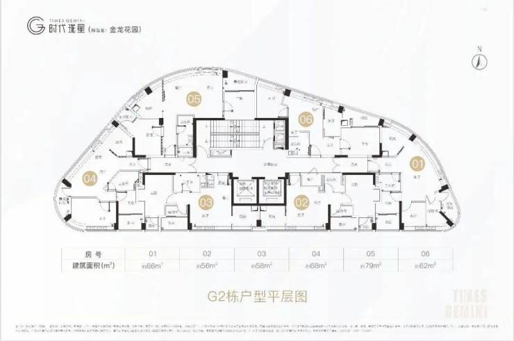 产品方面,时代珑星共两栋楼,分别是G1栋和G2栋。从外形上看,G1栋算正常,蝶形设计,两梯六户,户型为99-106平三房;G2栋外观略显独特,G2栋推出的面积段为62-79㎡精奢小户住宅。