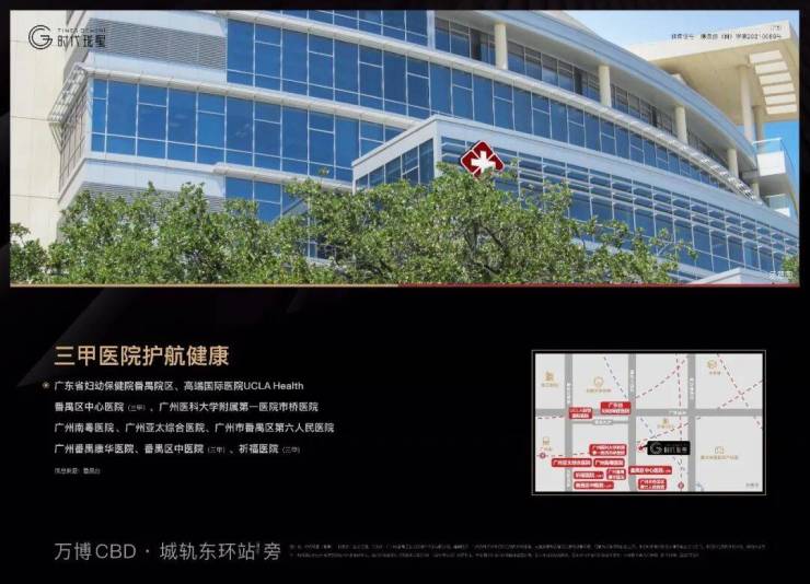 医疗方面,项目附近有番禺区中心医院(三甲)、番禺区中医院(三甲)、祈福医院(三甲)、广州中医药大学番禺中医院(三甲)、广东省妇幼保健院番禺院区(三甲)。