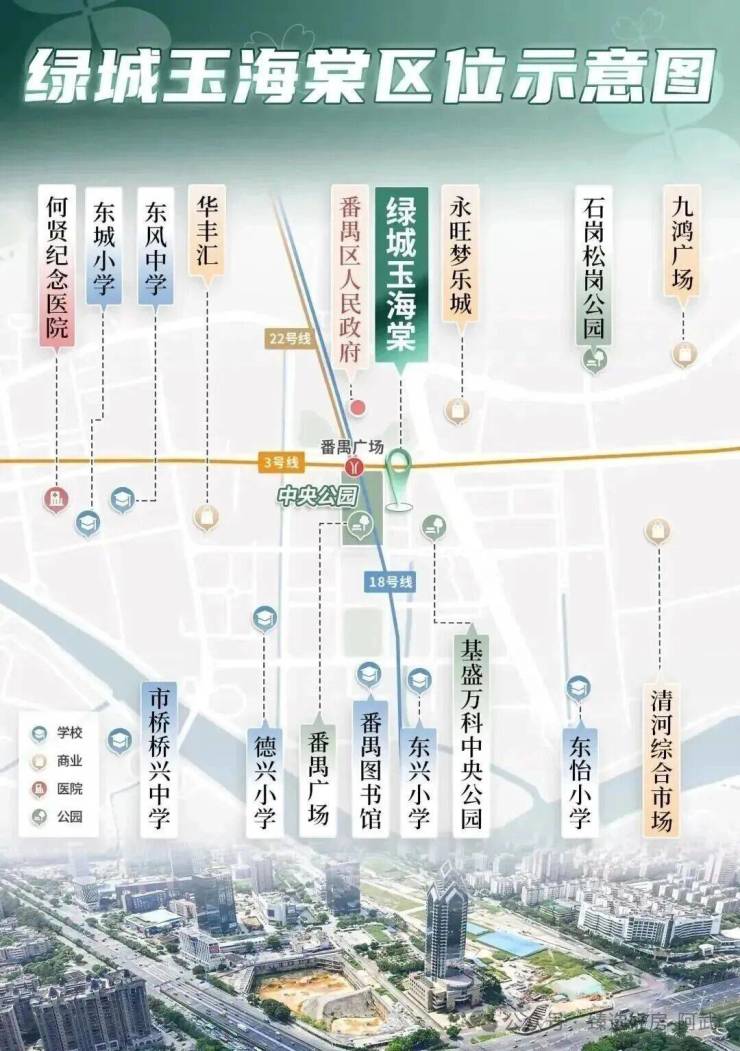 商业配套:现有5.5万方基盛万科里、17万方永旺梦乐城、14万方华丰汇等大型商业体环伺,日常购物、餐饮娱乐、亲子休闲一站式满足;未来还有番禺广场TOD商业、永隆综合体加持,商业氛围将进一步升级,下楼就能解锁多元生活场景。