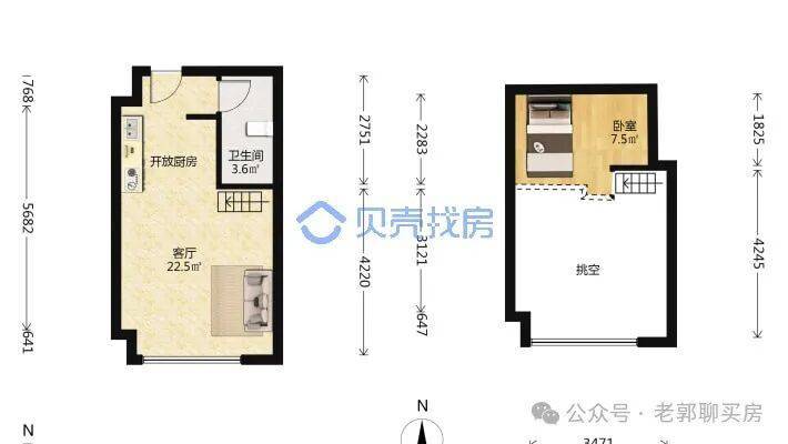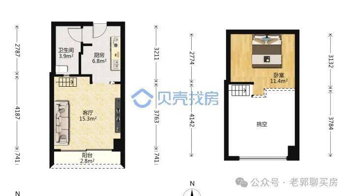 图1:低楼层 (共26层) 1室1厅 | 41.7平米 | 南 北