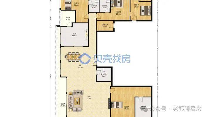 图6:中楼层 (共41层) 4室2厅 | 376.37平米 | 南