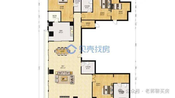 图5: 中楼层 (共41层) 4室2厅 | 377.86平米 | 南