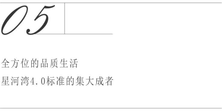 除却顶级奢材,星河湾并以一众卓越的配套,塑造品质生活的全新面貌。于室内,星河湾严选世界各大业界龙头的顶级家居品牌,打造诸如全屋地暖系统、智能新风系统等覆盖居者生活方方面面的极致舒适生活体验,并通过星河湾自主研发的“星智家超感双循环智慧系统”整合串联,呈献更加安全、更加私密、更加人性化的智慧生活。