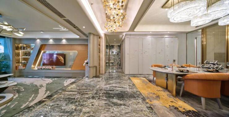 19种世界奢石,均来自被誉为“石材王国”的意大利与“奢石天堂”的巴西等地,诸如维多利亚、蒙地卡罗、金彩蝶等世界奢石,于室内以天然的纹理展现自然山河的壮美富丽。