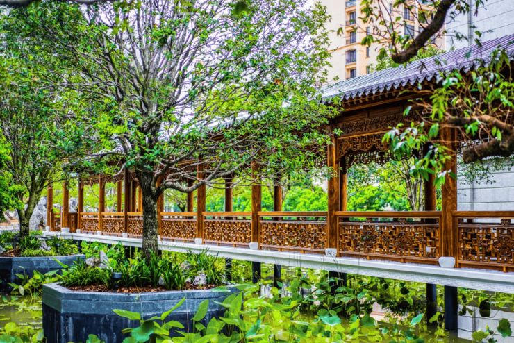 其中,或是与三五友邻,在淡雅的茶香与清新的荷香中共鸣自然万物的灵光;或是与家人孩子看雕梁画栋,沉醉中国文化的精髓。最美好的园居生活,自然竟与人文如此和谐。