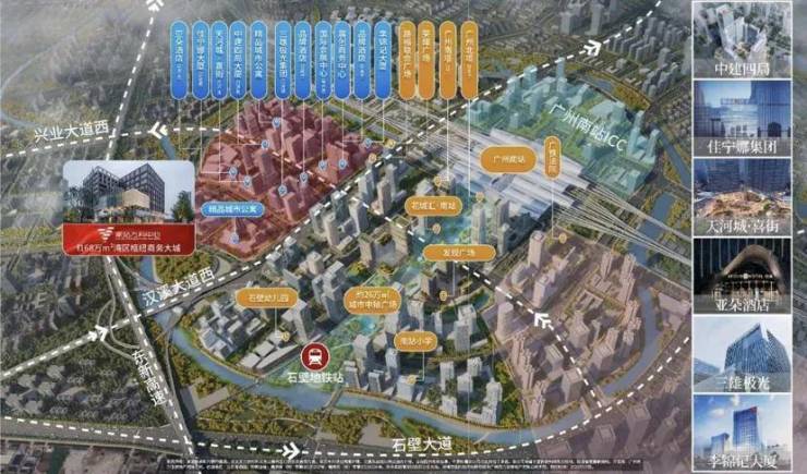 目前,中建四局总部、李锦记华南总部、三雄极光总部、健力宝华南区总部、佳宁娜集团、华南中璟、广州中车等企业已签约进驻。