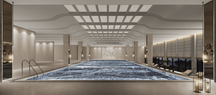 广州院子还打造了2个羽毛球场+2个篮球场+2个网球场+1个足球场+1个室外泳池+1个室内恒温泳池+约1.5公里社区跑道,运动设施一应俱全,无论是何种年龄段的业主,都可以找到合适的运动方式,放松身心。