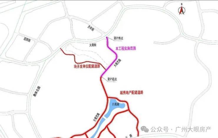 早在5月11日,官方就发布了聆湖路施工总承包公开招标,施工总工期为127天,也就是4个月左右完工。道路全长约418米,南接黄云路地块越秀地产配建道路,北止于大观街,道路等级为城市支路,规划红线宽20米,双向两车道。