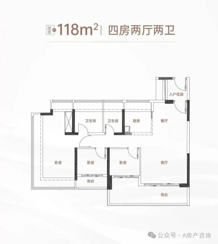 四层约124㎡户型,送顶复