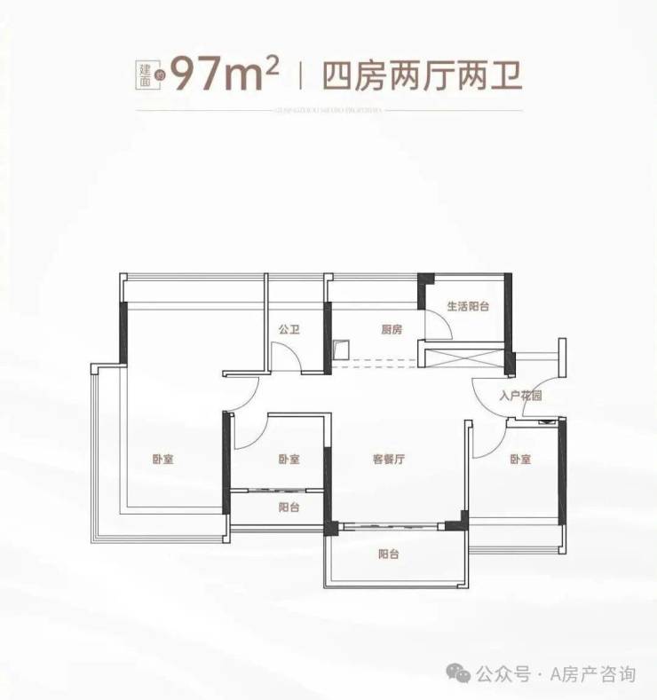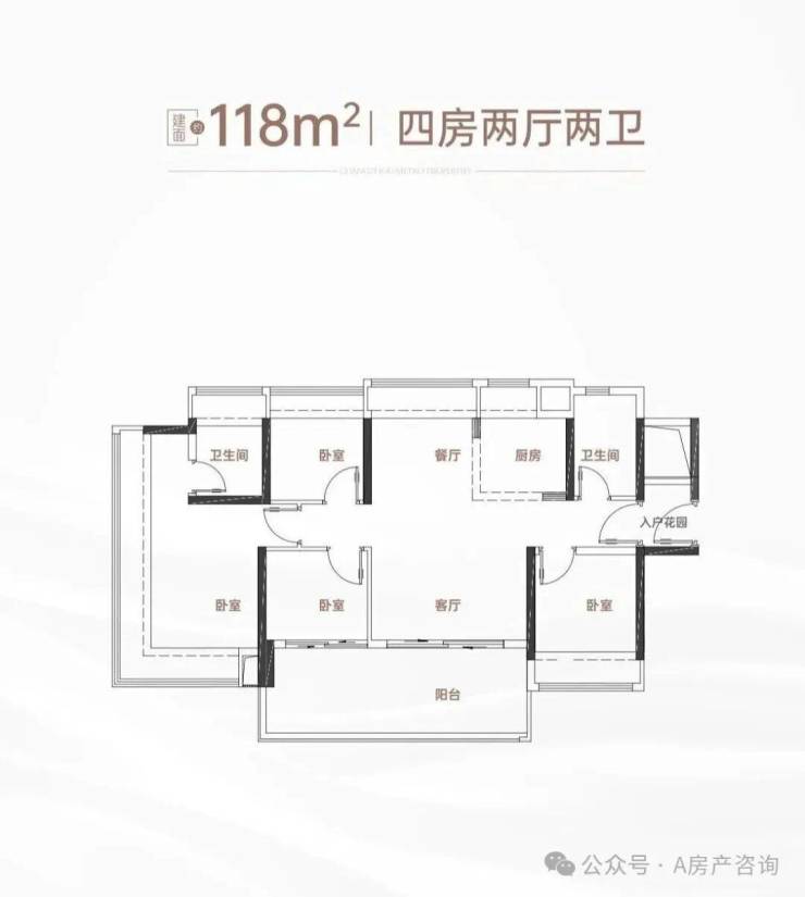 这一户型,全赠送80㎡超大花园+多功能空间,露台面宽达11米,使用率做到了235%。