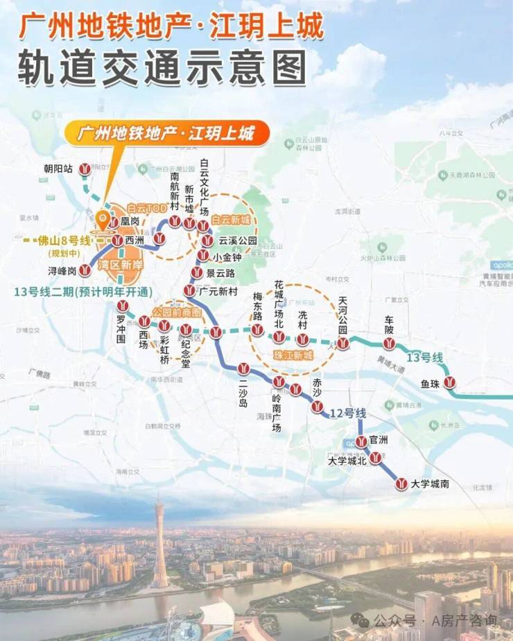 4、临近地铁12号线西洲站和13号线二期凰岗站,与社区无缝衔接,未来还将建成地下通道直达珠江新城,同时项目距离白云站约3公里,可享受高铁、城际、地铁多维交通,出行便利。