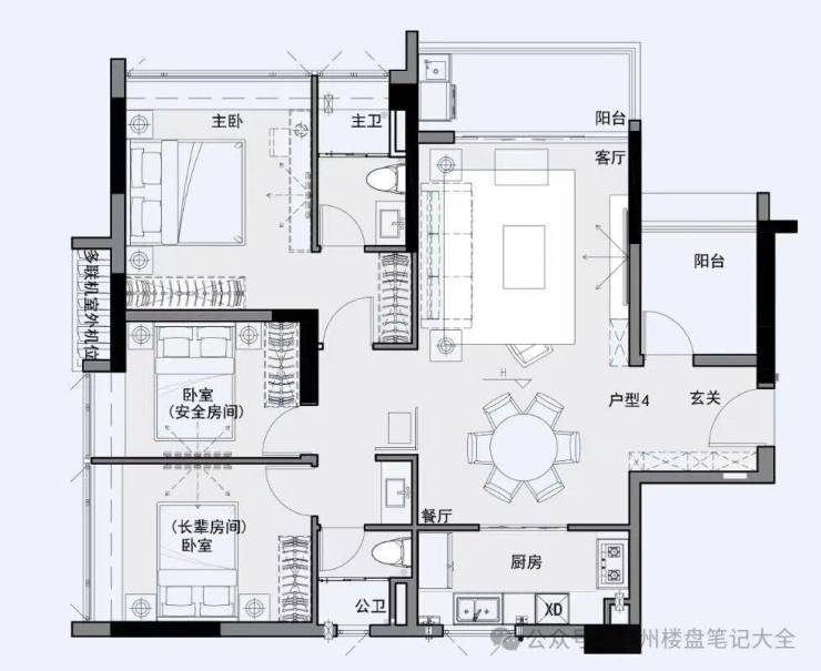 约120㎡三房两厅两卫,约4米客厅、餐厅开间,宽绰生活功能区格局,满足三代人居需求百变的收纳空间,多变创意空间,入户花园/影音室/琴房/书房等灵活满足家庭需求。