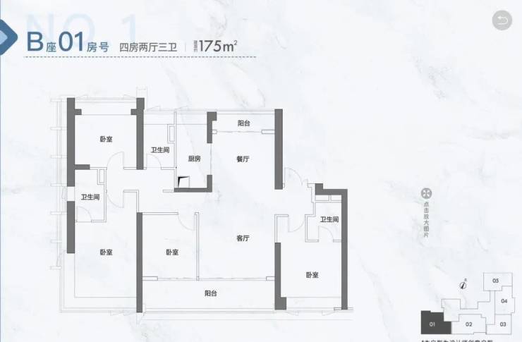 主推产品:庭玺119-175㎡3-4房共374户、骏玺78-85㎡2房共169户