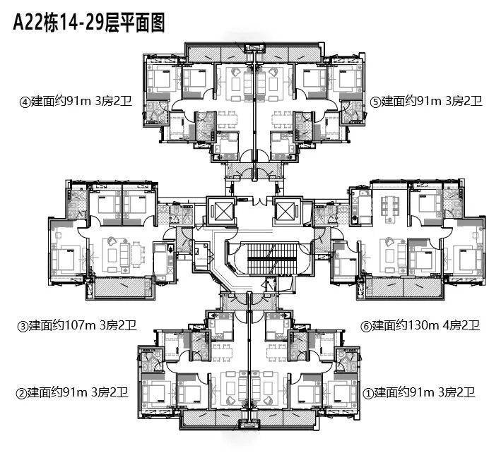奢阔进阶大四房 128㎡四房两厅两卫,约6.7米南向阔绰阳台,采光观景怡然自得,四开间南向采光,南北对流,阳光流连,舒适入户花园,多一重收纳、安全空间,雍容主卧全明位于,尊享生活享受。