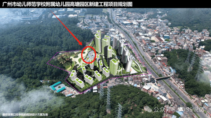 项目旁边是广幼师附幼儿园新园区,从项目的效果图来看,幼儿园和小区距离非常近。