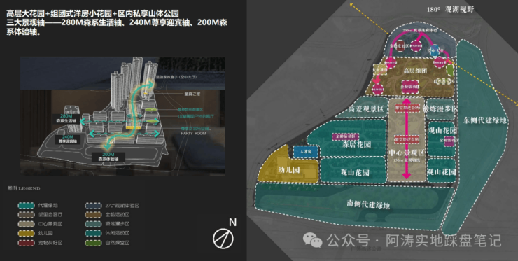 天字系顶级系列作品,园林设计融入湖山观景体验,延续约20米高差脉络打造一廊三轴高差式园林;项目打造100%纯南向低密墅区:南北对流 ,通风采光俱佳,无遮挡一线园林景观;