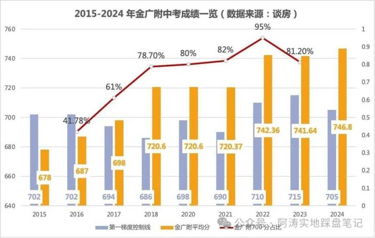 2、金广附连续7年广州中考TOP 1 梯队,历年中考成绩: