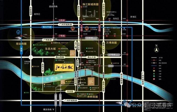 北邻万博 CBD ,西侧广州南站商务圈 ,南邻南沙经济发展区 ,东侧接驳东莞、深圳。