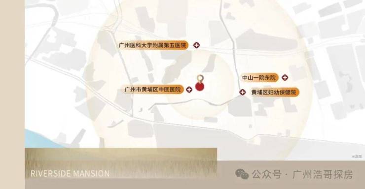 约10分钟内直达,广州医科大学附属第五医院(三甲)、中山大学附属第一医院东院(三甲)、黄埔区中医医院、黄埔区妇幼保健院。