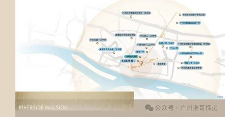 项目自带一所18班幼儿园和一所45班九年一贯制学校(30班小学+15班初中),据说会引进名校目前珠江村对口的是荔园小学省一级。