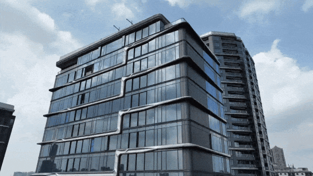 香港DIN STUDIO Dennis Lau刘荣广执笔建筑设计,以水流形,雕塑立面丰溋飘逸,以法拉利游艇弧形线条为灵感、玻璃幕墙配上“流线型”铝扣板及造型结构装饰,呈现珠江之上的地标资产。