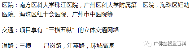 邻近南方医科大学珠江医院、广州医科大学附属第二医院等三甲医院,还有海珠区妇幼医院、海珠区红十会医院、广州市中医院等重点医院分布左右,医疗资源丰富。