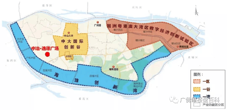 一区一谷一湾”分别指以琶洲粤港澳大湾区数字经济创新试验区、中大国际创新谷、海珠创新湾为支撑,构建创新格局。