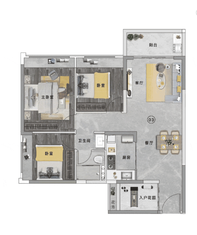 建面约125㎡户型则新增了一个灵动空间,可根据业主生活习惯随意改造成书房、茶室、健身区或萌宠乐园等,让生活增添更多乐趣。