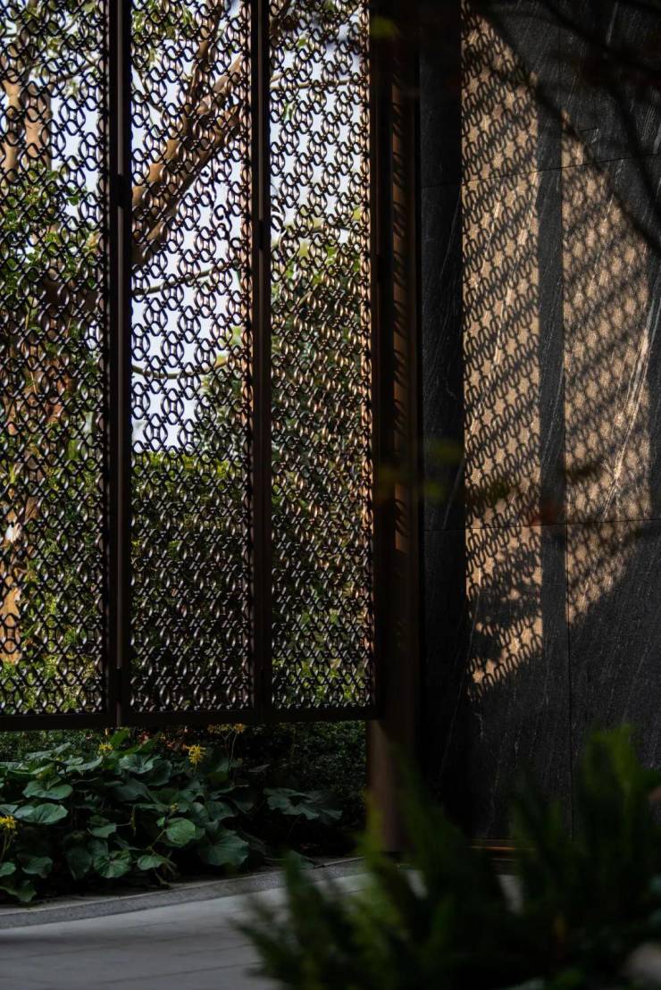 在连廊侧面还有岭南花窗光影交错,脚下素馨花图案的石砖,每一步都能体会到项目独有的岭南文化气息。