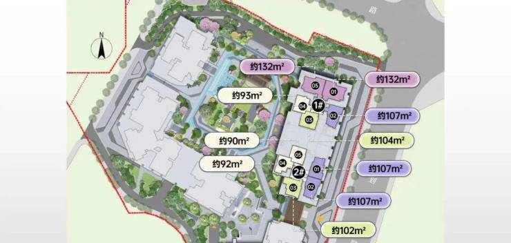 项目采用“新中式合院”设计,还进行了30度楼体扭转,以此实现更宽敞的楼间距,更开阔的景观视野,更好的通风和采光。