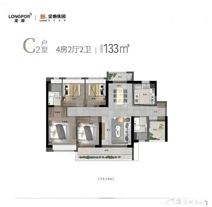 以133㎡的4+1房为例,实现四开间朝南的极致采光,南北双阳台形成舒适对流,不仅引入满室阳光,更让清风常伴。中西双厨配置搭配独立岛台,满足多元烹饪社交需求。约6.7米阔景阳台将园林盛景最大化融入室内,主卧套房配备步入式衣帽间,尽显尊崇私密。