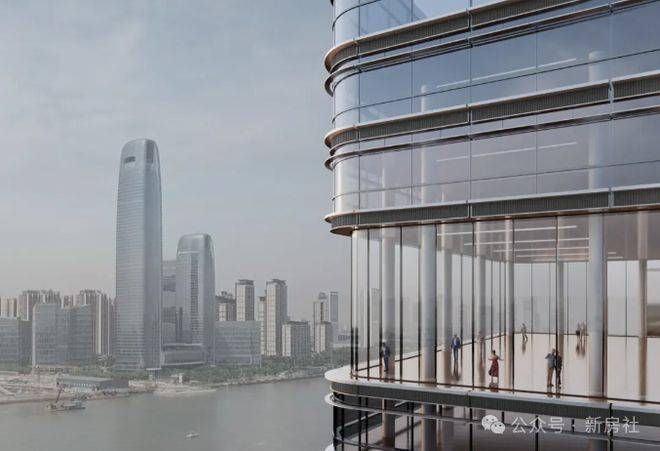 外立面采用木色陶板与全景玻璃幕墙,以“曲水流觞”的涟漪造型呼应珠江文脉,同时融入垂直生态理念,打造空中绿岛与可呼吸的建筑肌理。