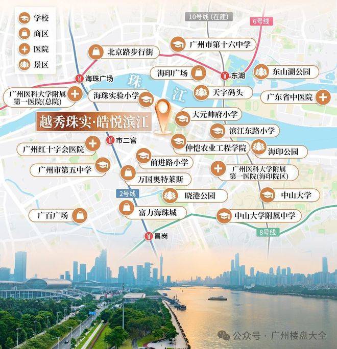 5、市政:周边有海印公园、海珠体育中心、大元帅府纪念馆广场等休闲场所,闲时可有多处选择。此外,地块靠近滨江中路沿江区域,轻松尽享珠江美景。