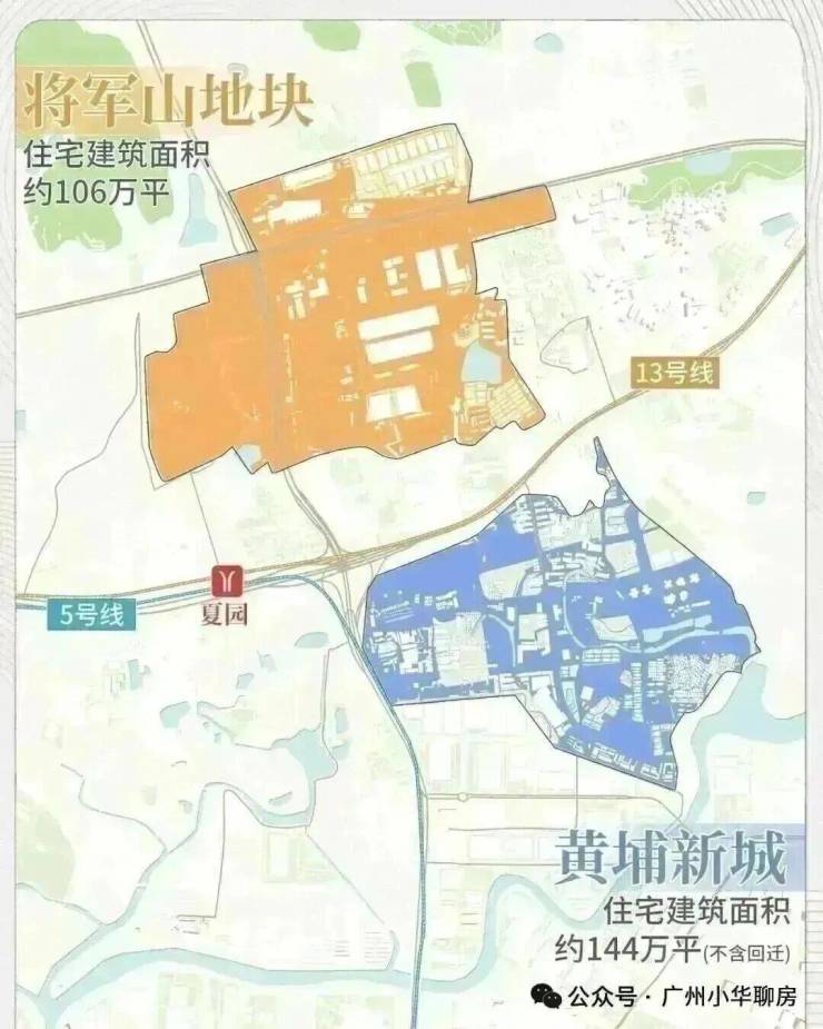 作为一个能叫“城”的楼盘,最显著的特点就是:大,将军山地块体量达到106万平,接近3/4个黄埔新城,达到1平方公里,规模相当于约3个猎德村(约31万㎡)旧改。