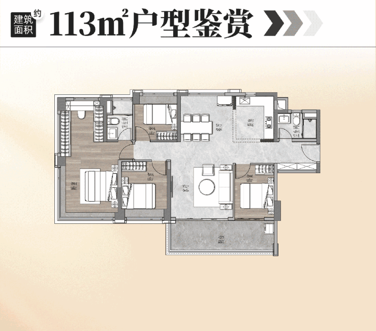户型面积:建面69-85-108-113m²稀缺三四房户型