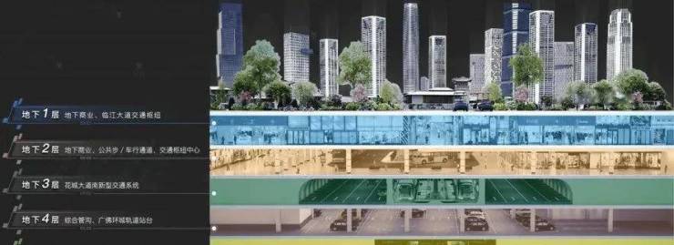 地下五层六轨:213万方地下五层空间,集交通、商业于一体