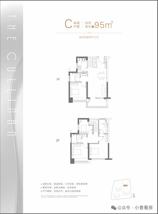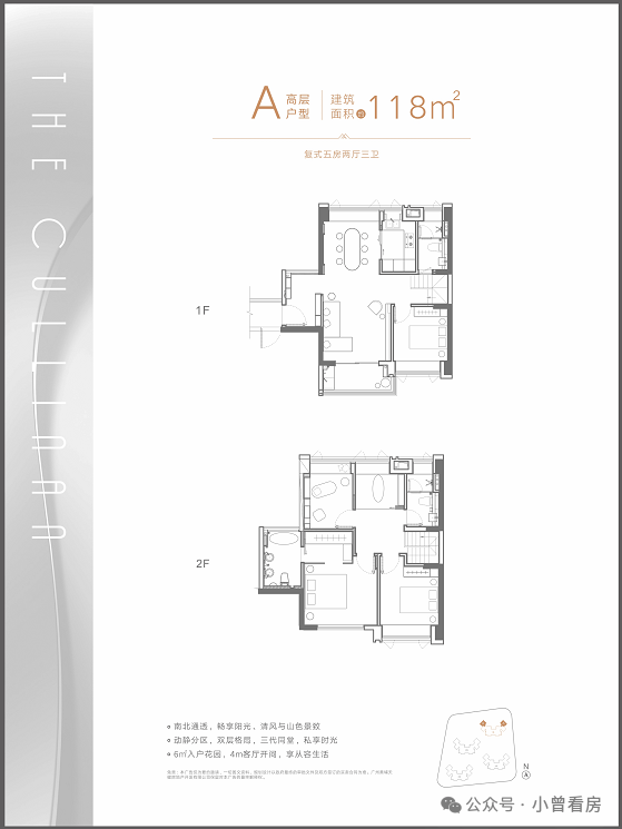 总建筑面积约10.6万㎡,设有4栋高层复式洋房,建面为85-120㎡,采用错式排布,全南向设计,通风采光俱佳,带精装交楼。