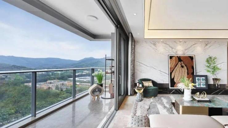 西派云峰外立面使用大面积玻璃幕墙与极简铝板精妙配比,整个项目外立面展现出通透大气的立面效果,让每一户都能将窗外的山景景观最大化,使得业主坐在客厅就能一览白云山景。
