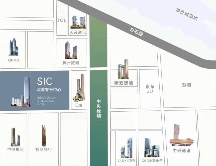 片区已入驻万科集团、招商银行、中国电子等世界500强企业总部,深圳地铁集团、中信证券、天音通信、神州数码集团等金融、通讯、生命科技行业的龙头企业总部。
